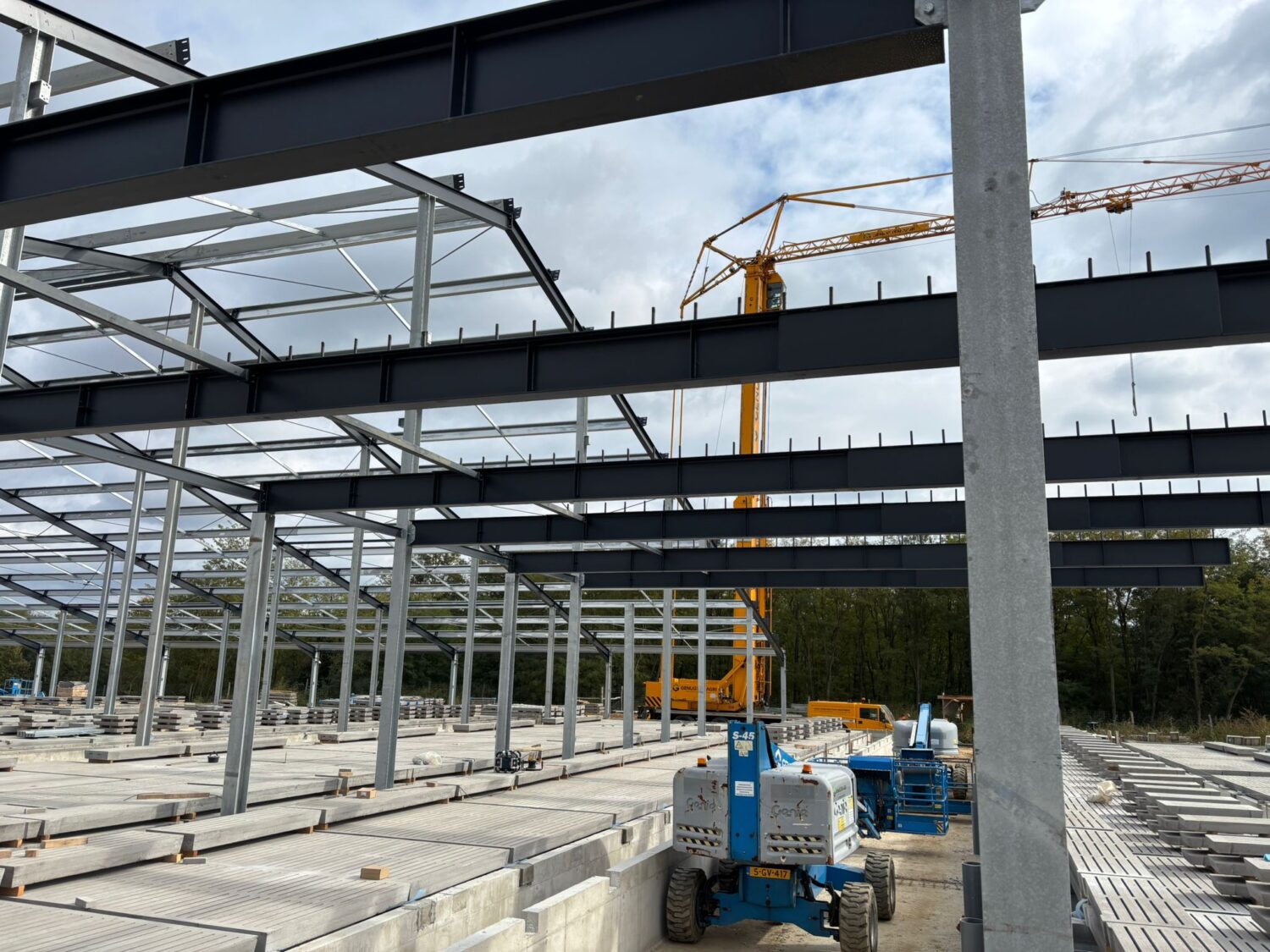 Primele lucrări au vizat montarea grătarelor pe pereții de beton ai gropilor de dejecții. Acestea au fost instalate cu ajutorul macaralei proprii Genugten, a stivuitoarelor telescopice și a platformelor de lucru la înălțime, disponibile direct pe șantier.